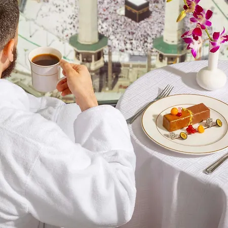 Raffles Makkah Palace is situated within the prestigious Abraj Al-Bait complex. Each suite comes with a large living room and a modern private bathroom. Guests can indulge in a wide variety of cuisine at the hotel's multi-cuisine restaurants, or relax at the spa facilities. Additionally, the proximity to the mosque allows visitors to easily partake in spiritual activities. With personal butler service, every need is addressed promptly.